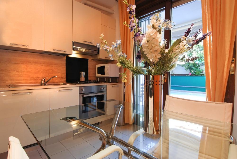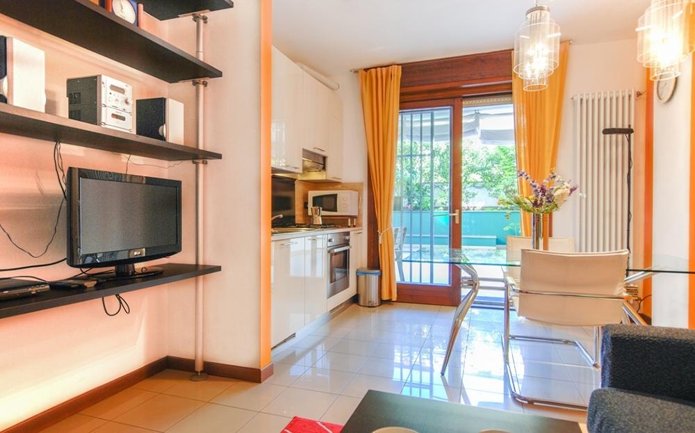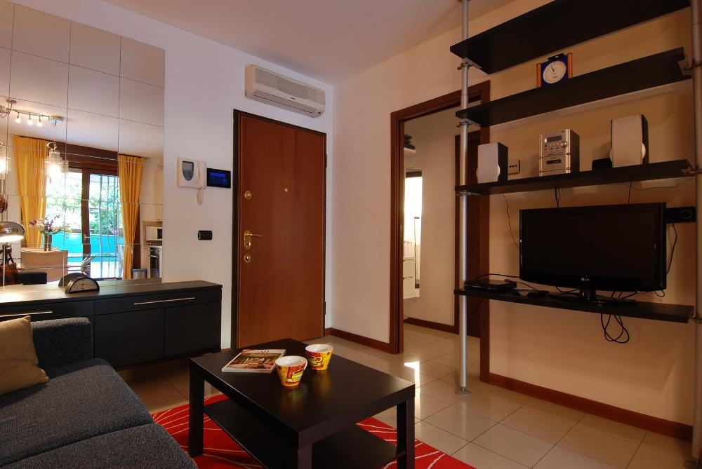 Modern one bedroom apartment for rent in Milan with terrace located on the first floor of a recently constructed building with elevator at a few steps from the Stazione Centrale