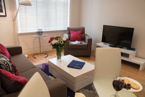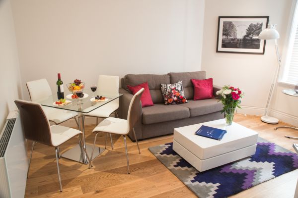 Set-in-an-Edwardian-mansion-building-this-one-bedroom-serviced-apartment-is-located-in-the-heart-of-Londonrsquos-West-End-Guests-will-find-a-fully-furnished-apartment-featuring-wooden-flooring-high-ceilings-and-large-sash-windows-with-modern-double-glazing-The-open-plan-living-area-offers-guests-a-place-to-cook-dine-and-relax-after-work-whilst-the-bedroom-with-a-double-bed-and-plenty-of-storage-space-offers-a-comfortable-place-to-have-a-peaceful-nightrsquos-sleep