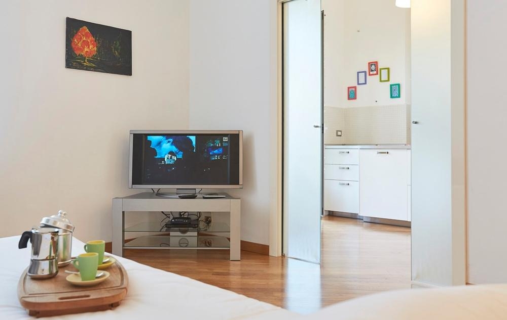 Modern and spacious one bedroom apartment on the fourth floor of a building with elevator located in the SantAmbrogio area a short walk from Milanrsquos Catholic University and the city center