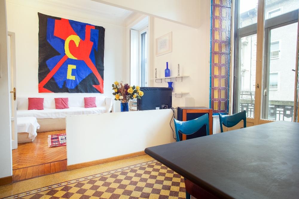 Spacious and bright one bedroom two bathroom apartment with two balconies located on the second floor of a stately period building Casa Brambilla by Arch Portaluppi in the heart of the prestigious Corso Vercelli