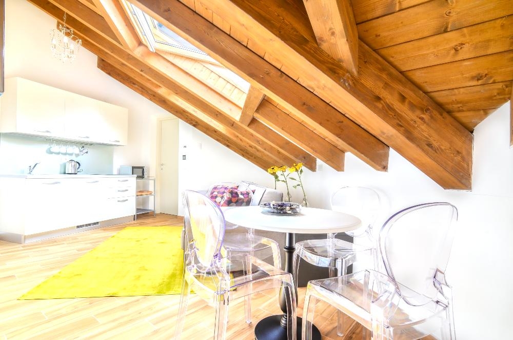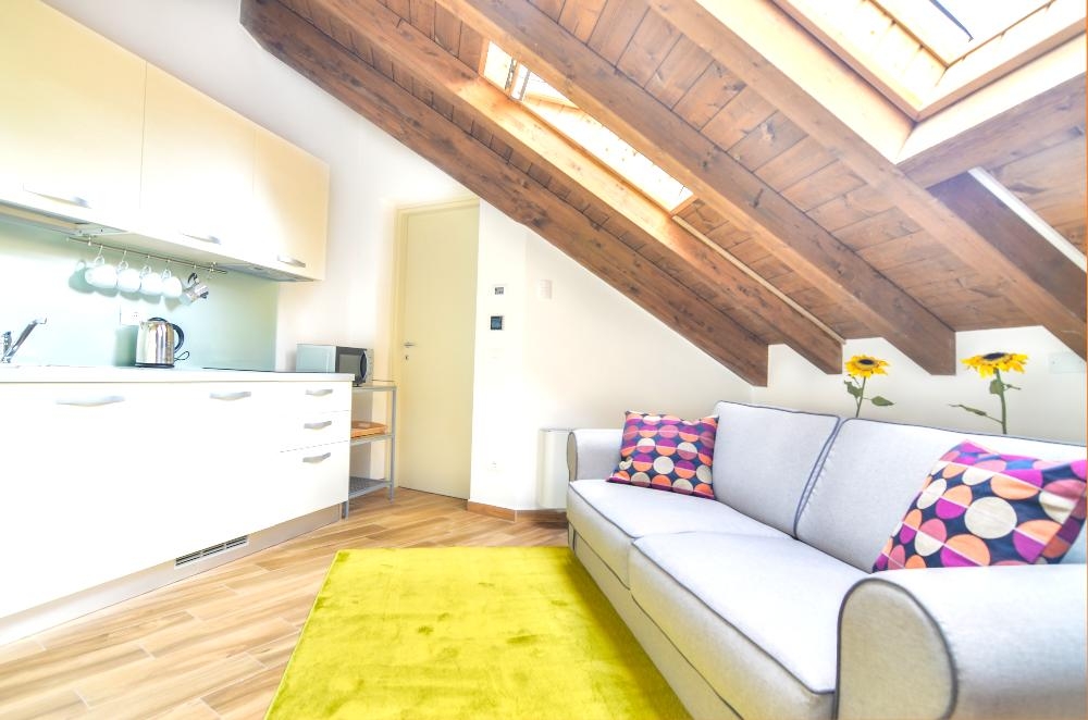 Bright and luxurious attic one bedroom apartment of about 55sqm located on the second floor of the charming Villa Massari 22 a lovely building dating back to the beginning of the XX century very close to the metro station Marche